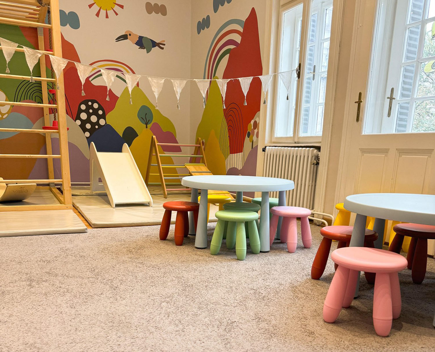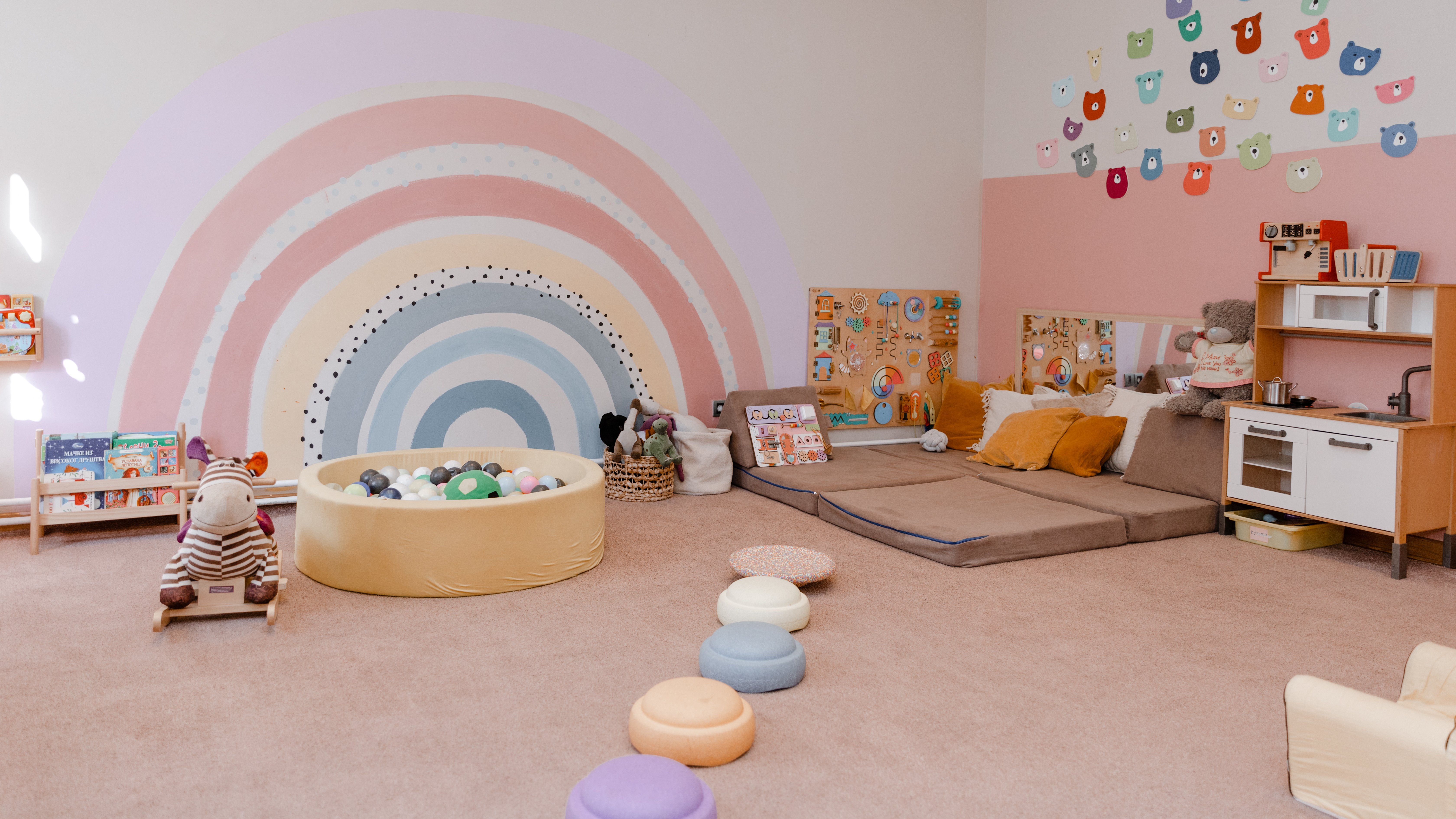 Nama je važno da se u svakom trenutku dok borave u našoj igraonici mališani osećaju spokojno i rasterećeno jer samo tada oni mogu da uče i otkrivaju nove stvari. Upravo zbog toga svi elementi i sadržaji koji su kreirani osmišljeni su tako da zadovoljavaju nežnu stimulaciju mališana. Kod nas su sve igračke i penjalice napravljene od prirodnih materijala, muzika je nežna a enterijer je blagih boja.